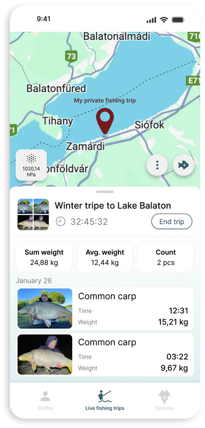 Tak jednoduché to je! Stačí nahrát jednu-dvě fotografie a tvůj rybářský deník je hotov. Shrneme počet tvých úlovků, jejich průměrnou hmotnost a celkovou hmotnost.